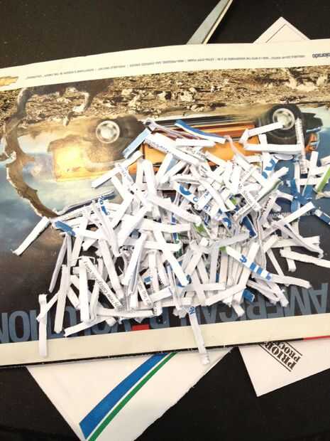 Retire revista de trituradoras con un dumping la oferta en el piso. No quiero tener que recoger los pedacitos de papel.