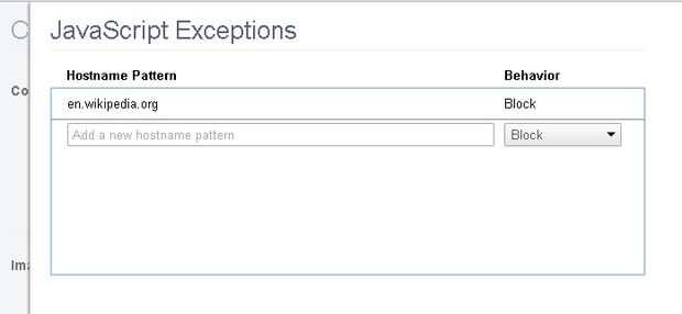 Hacerlo en google chrome: llave -> Opciones -> debajo de la campana -> contenido -> administrar excepciones (sección javsscript)
