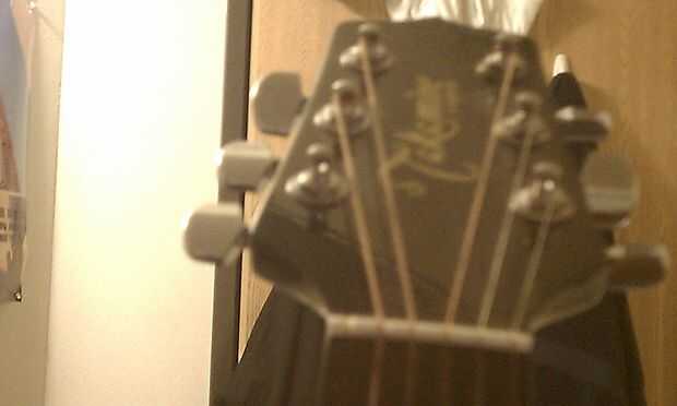 • Gire el botón tune hasta que el agujero de poste del sintonizador está mirando ligeramente lejos de la guitarra.