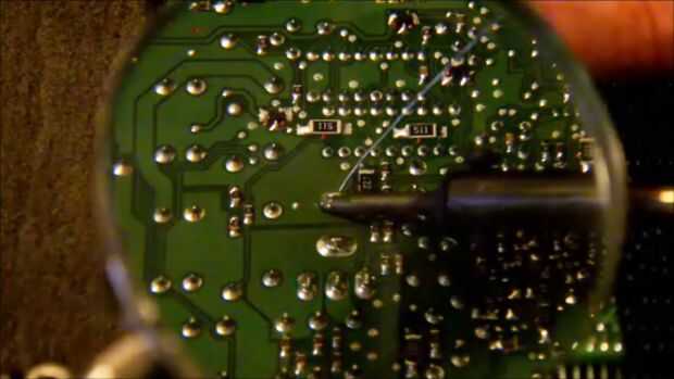 Ver la condición de la soldadura en cada pin si hay microfisuras visibles, usted puede volver a soldar la soldadura defectuosa, y su módulo debe trabajar de nuevo si no hay nada más malo en la unidad. Aplique el calor en el lado del perno, no coloque la tenaza sobre el perno, si no saque el perno de la Junta cuando la soldadura liquida. Aplicar la soldadura nueva en la piscina de la soldadura caliente que está en el Consejo. Trate de no golpear el hierro con la soldadura nueva, si no, no es una cantidad enorme.