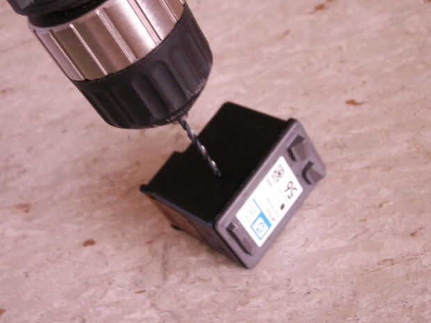 Flip el cartucho de inyección de tinta en su lado y perfore un agujero pequeño,
