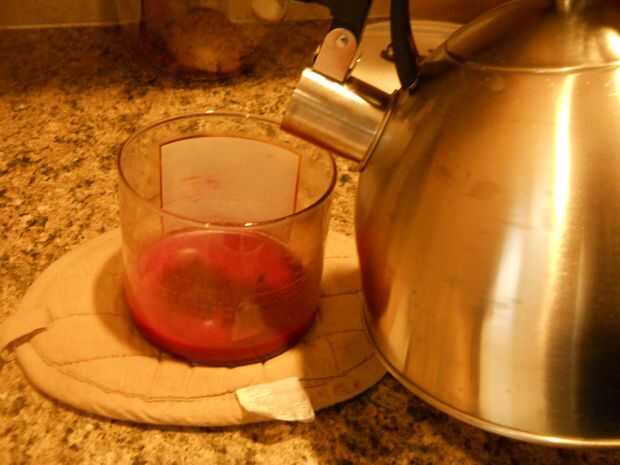 Hervir el agua en la estufa. Vierta el agua hirviendo en el recipiente de vidrio. Te recomiendo usar guantes o algo para proteger sus manos. ¡ Mira! Parece que lava.