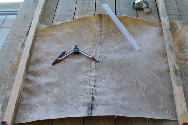 Puede elaborar un círculo para decidir sobre cómo la piel va a ser colocado en el tambor. En mi caso, me aseguré que la línea de atrás iba a ser en el centro, que es generalmente la forma de hacerlo.