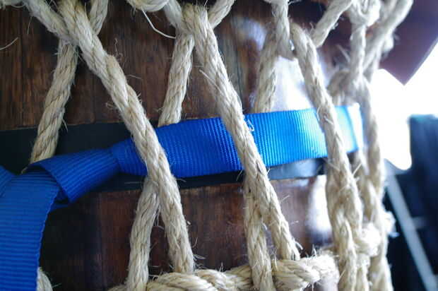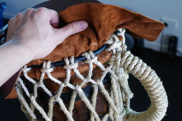 A continuación, antes de retirar el cable de conexión, te recomiendo usando una pieza diferente de cuerda (o correa) para mantener la obra original de la cuerda en su lugar. Esto ayudará enormemente al volver a conectar.