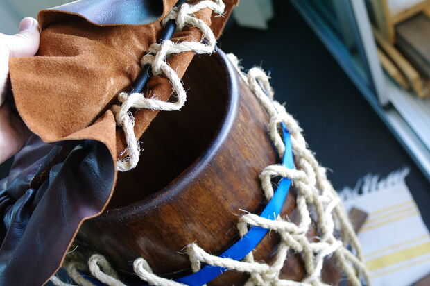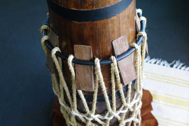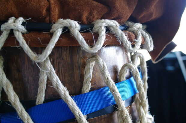 Algunos atabaque (probablemente más barato) viene con un solo anillo tensor en la parte superior, con la cuerda pasa a través de agujeros en la piel. Este tipo requiere una completa ropework vuelva a trabajar.