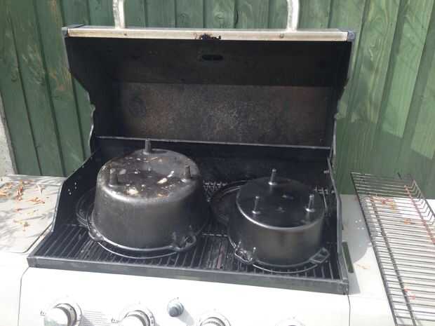 Luego, calentar el horno holandés. Lo más sencillo es colocar en la barbacoa / horno mientras calienta - necesita calentar a unos 200C / 375F. Calentar el horno expulsa toda la humedad que ha absorbido, ya sea de limpieza o de la atmósfera durante el almacenamiento. Hace que la plancha más absorbente y receptivo al aceite y se calentará el aceite cuando se aplica al horno, haciéndolo más fácil de distribuir.