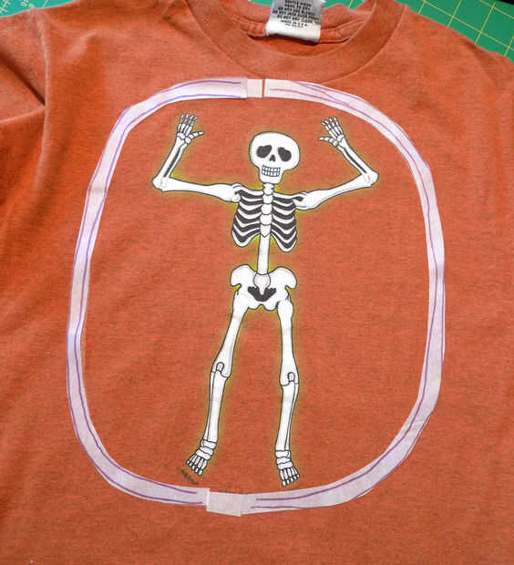 De todos modos, traza un círculo o un cuadrado alrededor de lo que desea de su vieja camisa favorita y hacer alrededor un borde de 1/3 de pulgada para rodear el diseño.