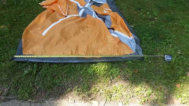 En este caso mi bolsa estaba a 20 pulgadas. Una de las dimensiones de tu tienda será siempre divisible aproximadamente por la longitud de la bolsa. Ya que mi tienda es 60 x 72 (5 x 6), sé que manera de doblarlo.
