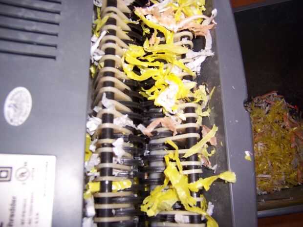 Una vez que se destruyen todas las hojas, desenchufe la unidad y limpie los dientes de la máquina destructora de documentos a Retire el papel atascado.