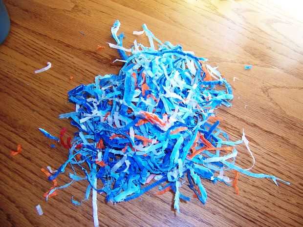 El papel picado se necesitará ser mullida para arriba porque la trituradora comprime las capas como corta en tiras.