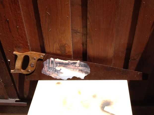 Tuve esta mano oxidada vieja VI alrededor de mi garaje, preguntando lo que debería o podría hacer con él. Creo que es genial cómo gente pinta cuadros sobre antiguas sierras de corte transversal y las láminas de la serrería. Estoy en ninguna manera, forma, o forma, un pintor. También tengo una sierra de corte transversal. Por lo que he encontrado algunas cosas podría utilizar para mejorar el ritmo hasta la Sierra de mano.