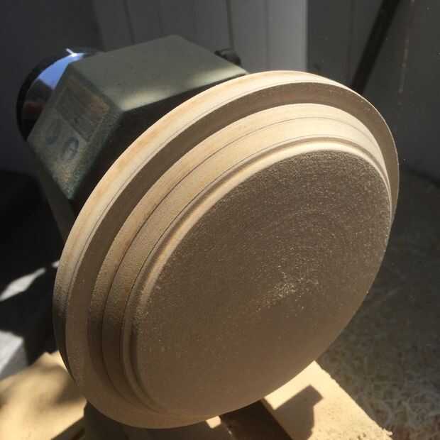Hice una base para el imán en mi torno comprar capas 4 piezas de MDF de 1/4" y girar a la forma hasta que la Junta Directiva y especificaciones en el plano.