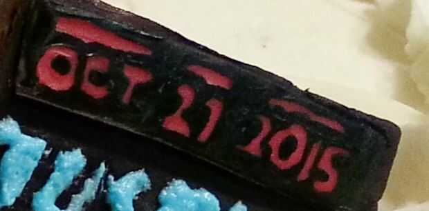 Corte alrededor de la fecha en un rectángulo. "Pegar" en la parte plana negra con agua.