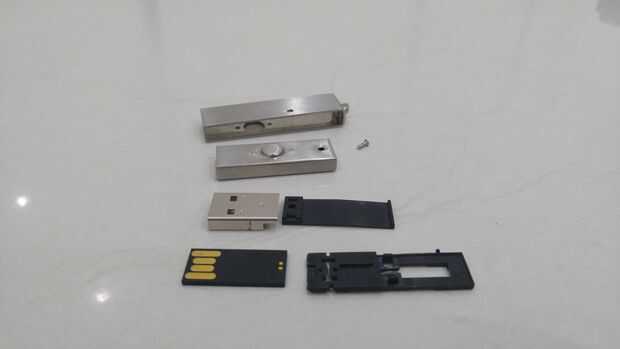 Se trata de una unidad USB 2.0 Flash fabricados en China con estuche de acero inoxidable. Lamentablemente se trata de un pequeño pendrive ultra delgada rellena en un maniquí de plástico. Conector USB no está presente.