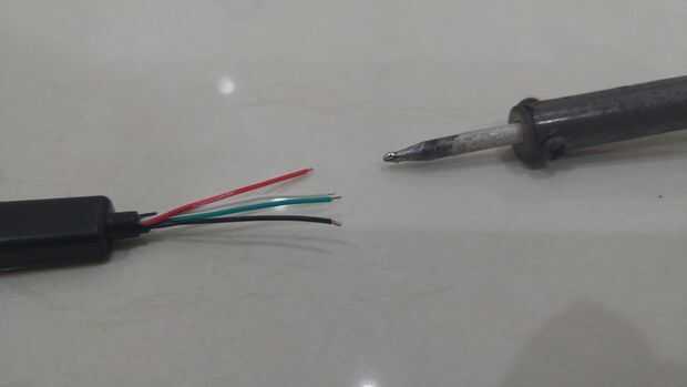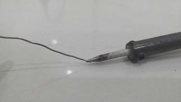 Ahora es el momento para el alambre de la soldadura. Preparar el cautín y la soldadura.