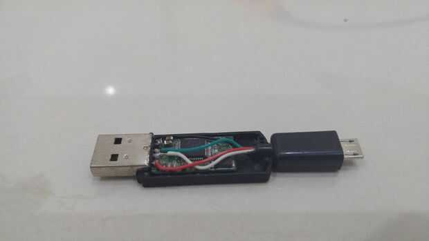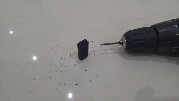 Este es un paso fácil. Primero sólo tienes que perforar el cuerpo plástico de su impulsión del Flash del USB. Esto es para asegurarse de que el cable de la OTG puede salir por la parte posterior de la impulsión del flash. Usé una broca de 2mm, pero creo que 3mm debe hacer un mejor trabajo para mi cable.