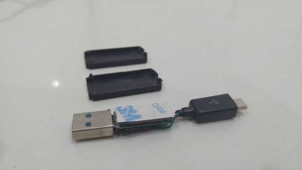 El siguiente paso es para asegurarse de que el pendrive no se mueve. La segunda que apalanque el USB drive abierto hay una probabilidad no será tan estrecha la próxima vez que vuelva a poner. Así que decidí utilizar una cinta doble para mantener la unidad flash de ondulación. Usted puede usar blu-tack, sugru, pegamento caliente u otras materias.
