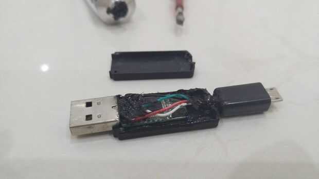 Puse un sellador de silicona al conector USB para no tener que preocuparse si los cables se mueven y tocar entre sí provocando cortocircuito. Aunque esto es opcional, lo recomiendo. No estoy seguro si Sugru y Blutack material aislante, pero cuando en duda el sellador de silicona y pegamento caliente funcionan bien.