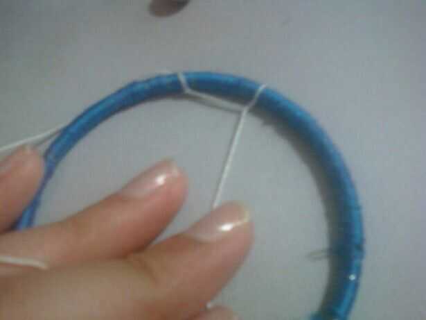 A partir de los puntos interiores, ir en el medio de cada puntada y crear el mismo nudo y continúan moviéndose hacia adentro.