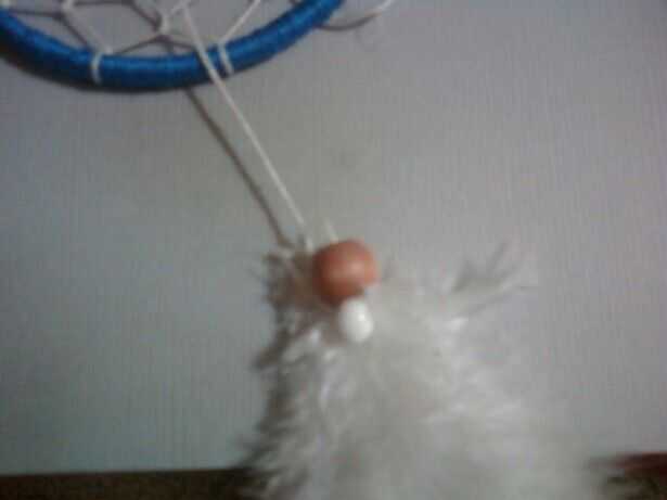 punto el cazador de sueñosPaso 1: Se necesita hilo de elección, ganchillo tamaño F, anillo de madera elección de tamaño, no en imagen plumas y cuentas de la opción.Paso 2: Hacer un deslizamiento la puntada y poner en gancho y fije al aro con punto ba