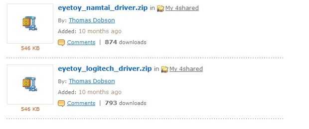 www.4shared.comSeleccione una de las dos opciones como se muestra en la imagen siguiente, elegir el Logitech o Namtai versión del controlador. También asegúrese de que seleccione una opción del autor por el nombre de Thomas Dobson.