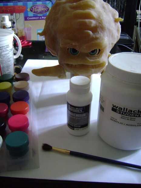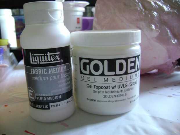 Para mantener la pintura de acrílico flexible y evitar que se agriete con el movimiento del látex, mezclé en medio de la tela antes de aplicar la capa base de pintura rosa.