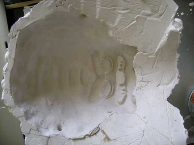 Después de que había puesto el yeso, abrí el molde para limpiar hacia fuera.