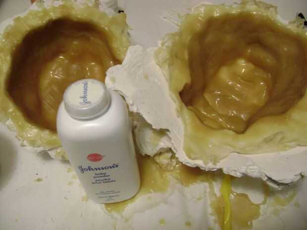 Antes de extraer el látex del molde sacan el polvo lo con talco para que no peguen a sí mismo.