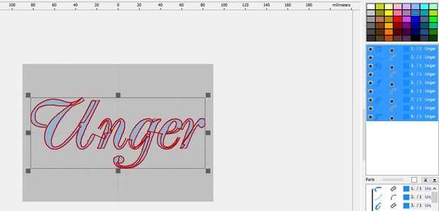 -Haga clic en un cuadro de la esquina y mueva el cursor para cambiar el tamaño del texto; Guíese por los gobernantes (Embird le dará un mensaje de advertencia si el texto cambia de tamaño para adelantar el tamaño del aro que eligió anteriormente. Esto es muy útil.