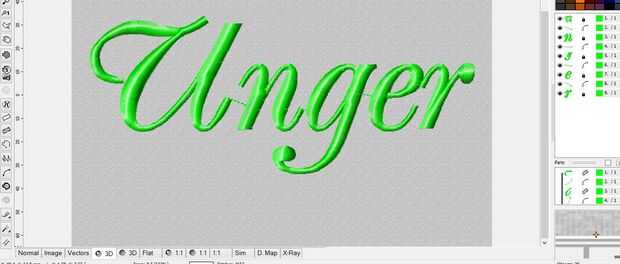 Debería haber notado que la "U" no se conecta a la "n" como escribe en cursiva. Después, usé un cuchillo del Exacto para quitar este hilo.