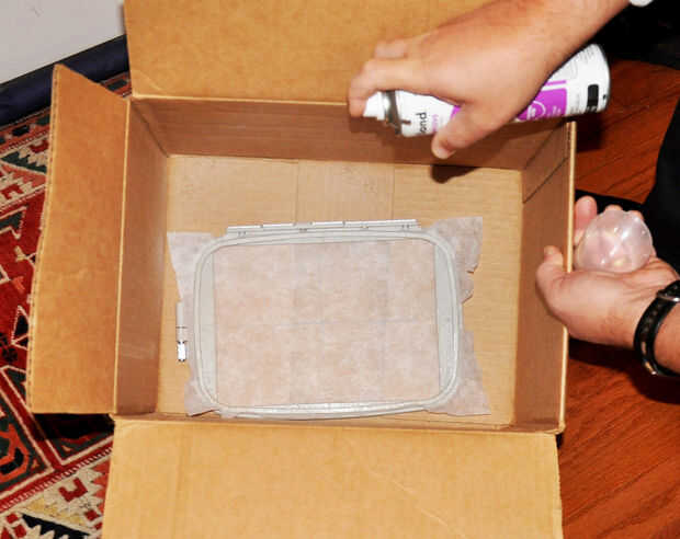 Pegamento del aerosol en su estabilizador mediante un cuadro para todo, desde el spray adhesivo. Quizá quieras ir fuera, ya que los gases son un poco nocivos.