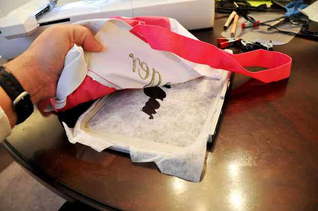 Cuando la máquina se hace bordado el diseño, retire la bolsa del estabilizador.