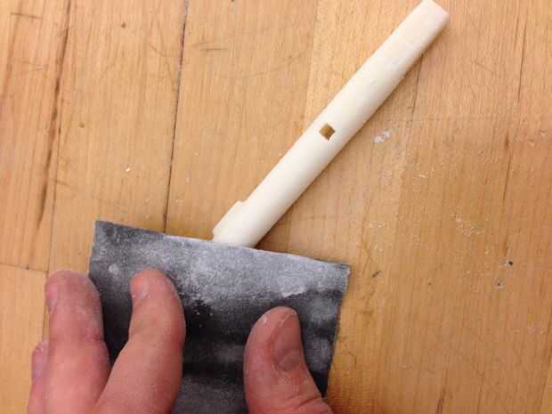 Asegúrese de ambos ejes para deshacerse de crestas y fuertes puntos de arena. Asegúrese de archivo/agujerea hacia fuera los agujeros a través de la Asamblea.