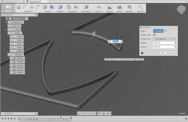 - Utiliza una función de offset plano con valor de 150mm en la donde estaban mis bocetos base de pierna