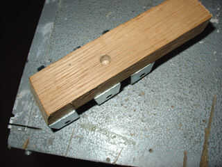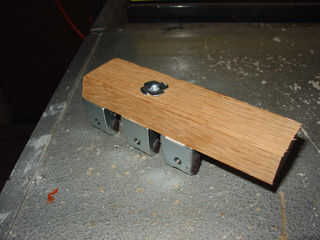 Para instalar la tuerca de t en la base de madera, se perforó un agujero de 1/4 pulgada de profundidad en el fondo sólo lo suficientemente grande como para el eje de la tuerca. Es mejor al centro del agujero para asegurar un montaje equilibrado, pero tenga cuidado de no perforar directamente sobre el tornillo que sujeta la pinza si no hay espacio para él. La tuerca de t entonces es martillada en su lugar y listo para montar.