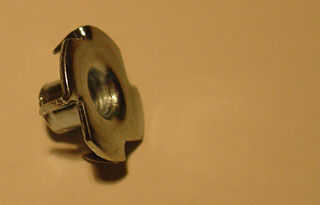 Para atornillar la madera base para trípode, un 5/16 de pulgada en t tuerca fue utilizado. Una vez más esto se encontró en una ferretería local para menos de un dólar pero generalmente se encuentra en el Departamento de tuercas y tornillos.
