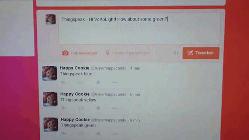 VortoLight es controlado por Twitter. Cuando un tweet un filtro (#VortoLight) y un gatillo (por ejemplo rojo) la lámpara se ilumina en roja. ¿Ya que es bastante cool, derecho? Pero aquí está la chispa: ¿por qué no dejas las cosas automáticamente un tweet? ¿Por lo que su lámpara puede responder en consecuencia?
