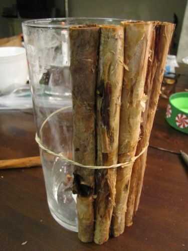 Cuando vi la votiva me di cuenta de que la corteza sería perfecta para este proyecto. (Realmente podría utilizar cualquier otra corteza que se despelleja naturalmente si no tienes árboles de melaleuca cerca por o incluso pedazos de madera)