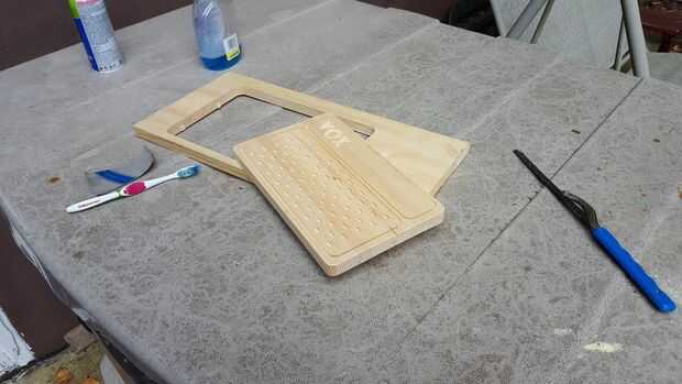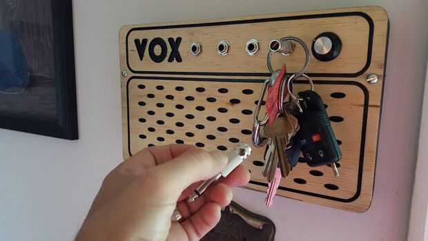 Este fue un divertido proyecto poco un pequeño CNC 3040, algunas estanterías de pino y unos gatos clavijas y pedidos en línea. El diseño para el amplificador VOX vintage fue preparado en Inkscape. Las trayectorias realmente fueron definidas dentro de un programa gratuito llamado Jscut en el Jscut.org. Fue super sencillo con pintura negra de spray y spray laca de acabado de la madera.
