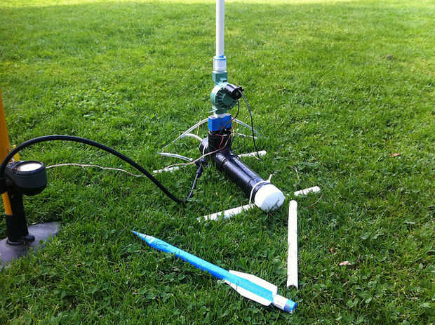 este proyecto combina un módulo de texto a voz 2 Emic, ultrasónico Ping))) distancia del sensor, el lanzador del cohete hacen aire comprimido y un Arduino Uno. Este proyecto podría ser utilizado para seguridad, bromas y diversión más muchas cosas.