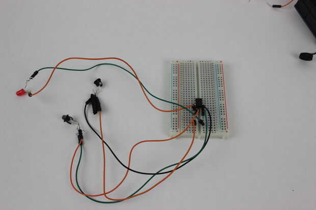 Coloque los LEDs en la protoboard. Tenga en cuenta que el cable más largo en el LED significa que es el terminal positivo. Preste atención a que cables de puente están conectados a los cables de positivo como este será importante al instalar las luces en el tablero de pan.