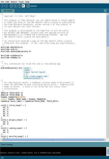 El protocolo de carácter simple se traduce por el firmware de arduino en el iRobot apropiado comando Open Interface. Yo he aprovechado la biblioteca arduino de Roomba, escrita por Mike McCauley.