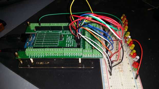Tan en orden conectar todas las filas de la tabla de pan a los pines de Arduino.