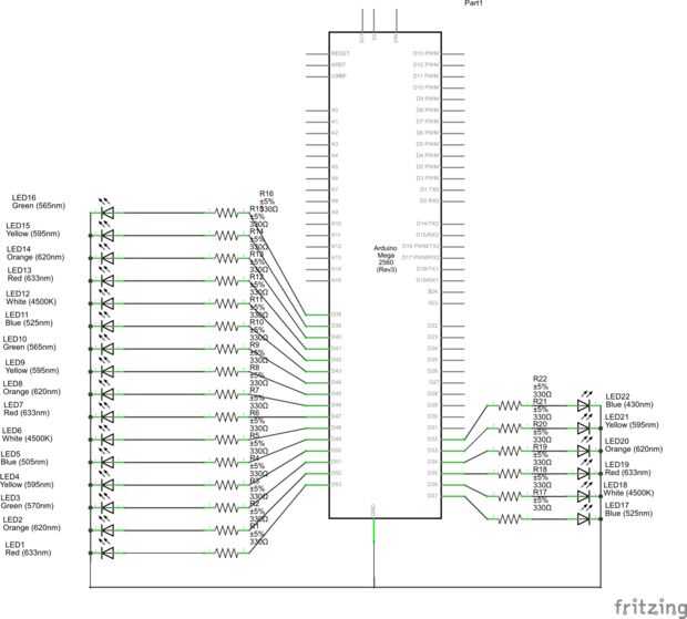 En mi dibujo utilicé pernos 32 a 53 en el Arduino Mega así que si usted está tratando de copiar Asegúrese de conectar los pines de la placa a los pines de Arduino mismo que usé.