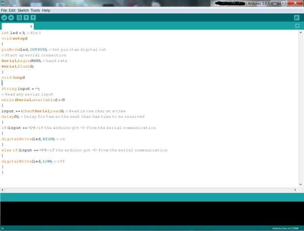 Añadir el código para el Arduino y probar con nuestros programas de C# desde el último paso (por la depuración y el exe del paso anterior).