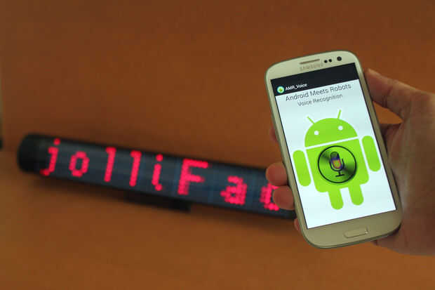 Pensamos que puede ser interesante combinar estos dos instructables para venir para arriba con una voz entrada Arduino Bi-color pantalla LED de matriz de desplazamiento de texto (Bluetooth + Android). No estamos seguros si eres capaz de encontrar ningún uso práctico para este proyecto pero es divertido verlo trabajar con sólo algunos ajustes en el sketch de Arduino para la pantalla de texto desplazamiento de matriz de LED.