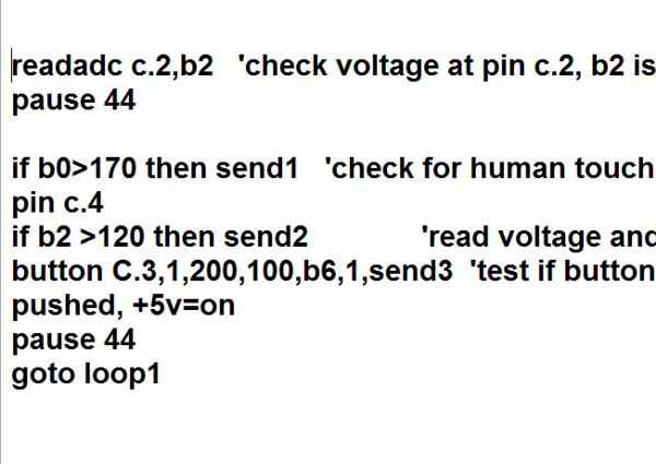 Si b0 > 170 entonces send1 ' busque el toque humano de alambre en el pin c.4