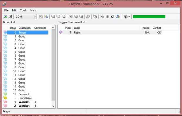Usando el software que viene con el software Commander EasyVR, grabar su voz en el comando de activación. Este es el comando que hablas para llamar en el escudo de EasyVR. Decidí registrar la palabra "puerta".