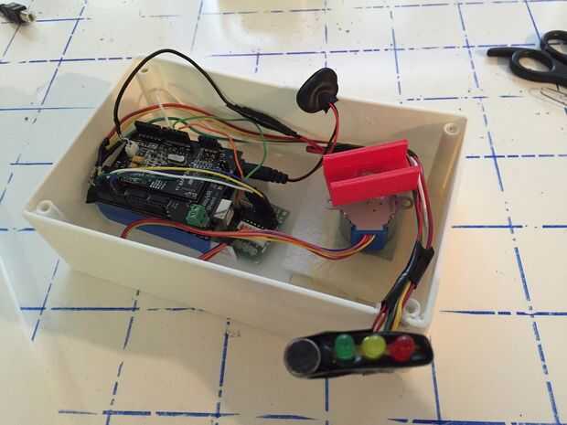 Una vez que está construido el circuito y el código cargado en el arduino + escudo, podemos empaquetarla en el hacer caja de curso. Mina era personalizado impreso con arduino compatible, pero la caja sí mismo es no conductora así que siéntase libre de correa hacia abajo con alguna cinta aislante o pegamento caliente. Pegamento caliente es fácil de quitar y se seca muy rápidamente al plástico impreso.