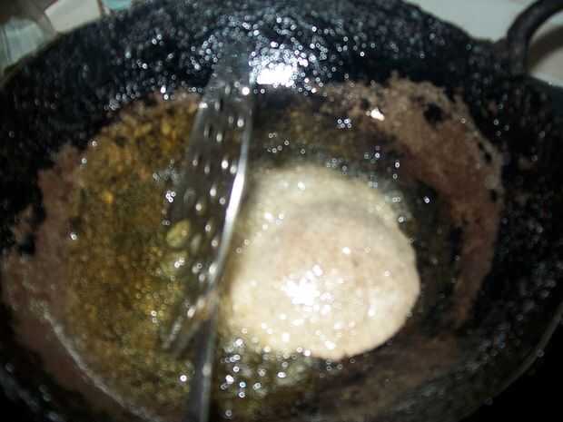 Calentar el aceite durante 4-5 minutos a fuego medio. Ponga la puri cuidadosamente en el aceite y freír.